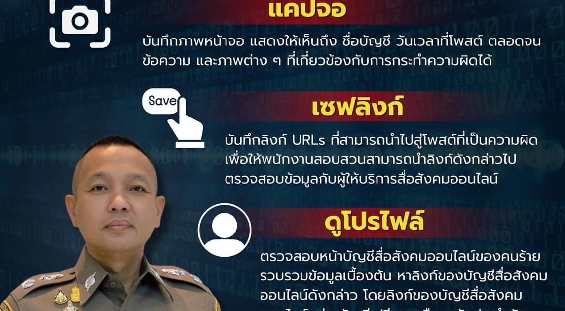 ตร. แนะ 3 ขั้นตอนง่าย ๆ ในการเก็บหลักฐานบนสื่อสังคมออนไลน์ ก่อนไปแจ้งความพนักงานสอบสวน February 6, 2567 by admin / ข่าวประชาสัมพันธ์ https://www.facebook.com/photo/?fbid=795879349252024&set=a.306545458185418 Facebook iconFacebookTwitter iconTwitterLINE iconLine