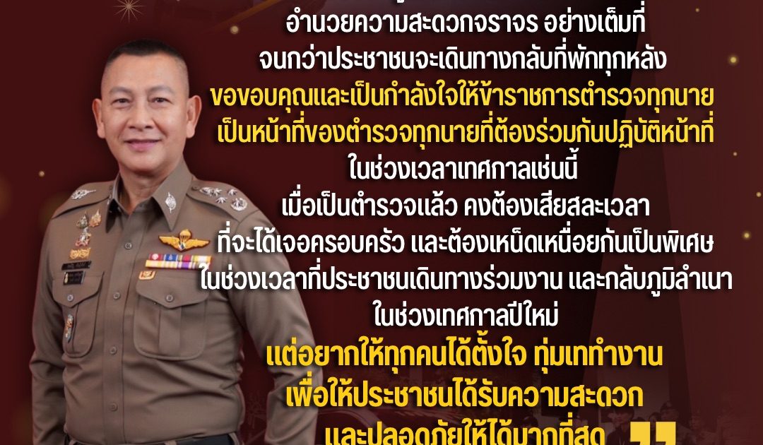 “ขอขอบคุณและเป็นกำลังใจให้ข้าราชการตำรวจทุกนาย เป็นหน้าที่ของตำรวจทุกนายที่ต้องร่วมกันปฏิบัติหน้าที่ในช่วงเวลาเทศกาลเช่นนี้