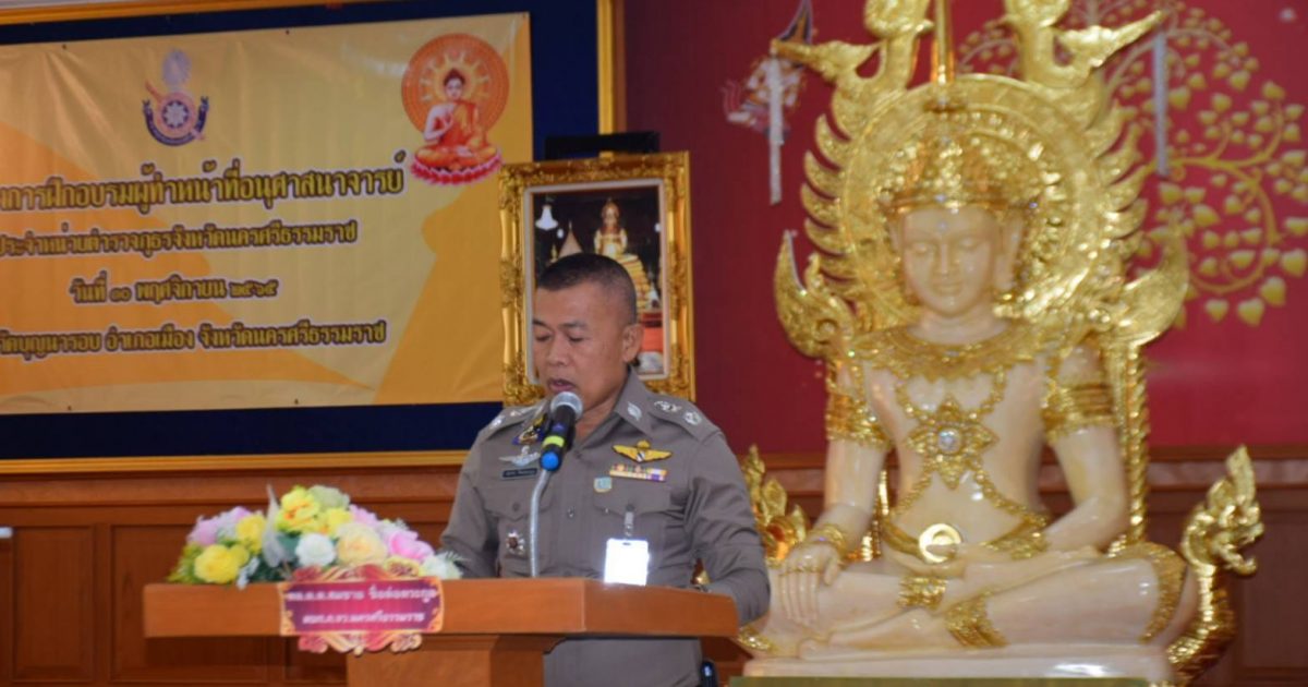 วันที่ 10 พ.ย.65 เวลา 08.00 น. พล.ต.ต.สมชาย ซื่อต่อตระกูล ผบก.ภ.จว.นครศรีธรรมราช เป็นประธานเปิดพิธีการฝึกอบรมผู้ทำหน้าที่อนุศาสตร์ประจำหน่วย ภ.จว.นครศรีธรรมราช November 10, 2565 by admin / ข่าวภารกิจผู้บังคับบัญชา โดยมีผู้เข้าร่วมในพิธี ประกอบด้วย พ.ต.อ.เชิดชัย โชติสุทธิ์ รอง ผบก.ภ.จว.นครศรีธรรมราช, พระอาจารย์ มหาบวรปวรธรรมโม (ปท.7) เจ้าอาวาสวัดบุญนารอบ รองเจ้าคณะอำเภอเมืองนครศรีธรรมราช, รอง ผกก.ฯ รรท.ผกก.ฝอ. ภ.จว.นครศรีธรรมราช,รอง ผกก.ฝอ.ภ.จว.นศ.(รับผิดชอบงานธุรการ/กำลังพล), รอง สว.ฯ รรท.สว.ฝอ.1ภ.จว.นศ.,วิทยากรผู้ทำหน้าที่อบรมจาก มทบ.41, ผู้ช่วยวิทยากรฯ,ข้าราชการตำรวจทุกหน่วยในสังกัดที่เข้ารับการอบรม จำนวน 69 นาย และจนท.ผู้เกี่ยวข้อง ณ ชั้น 3 อาคารปฎิบัติธรรม วัดบุญนารอบ อ.เมือง จว.นครศรีธรรมราช Facebook iconFacebookTwitter iconTwitterLINE iconLine