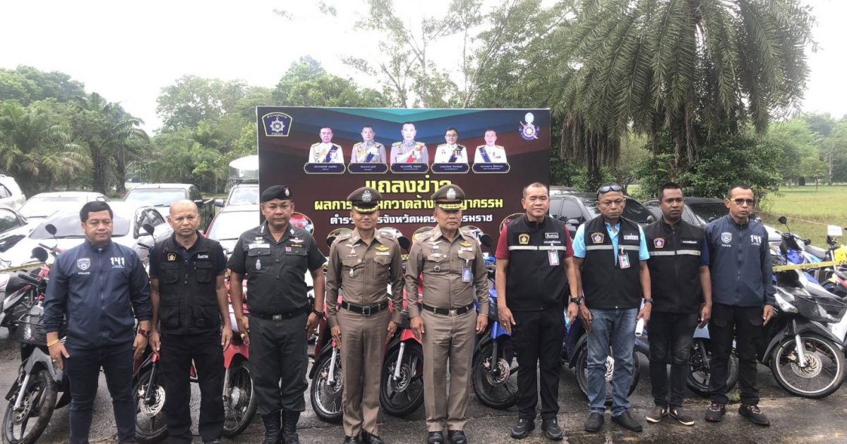 วันที่ 16 พ.ค.67 เวลา 10.00 น. พล.ต.ต.สมชาย ซื่อต่อตระกูล ผบก.ภ.นครศรีธรรมราช เป็นประธานในการแถลงข่าว พร้อมด้วย พ.ต.อ.ธีระวุฒิ เทพเลื่อน ผกก.สภ.ทุ่งสง , พ.ต.ท.กิตติพัมน์ รื่นรวย รอง ผกก.ตชด.42 ทุ่งสง พ.ต.ท.นพเสถียร สิงห์สุขพนธ์ รอง ผกก.สส.ภ.จว.นครศรีธรรมราช และชุดจับกุม ได้ร่วมกันแถลงข่าวผลการระดมกวาดล้าง จับกุมผู้กระทำความผิดเกี่ยวกับหนี้นอกระบบผิดกม.ในพื้นที่ อ.ทุ่งสง จ.นครศรีธรามราช ณ กก.ตชด.42 ค่ายศรีนครินทรา อ.ทุ่งสง จ.นครศรีธรรมราช