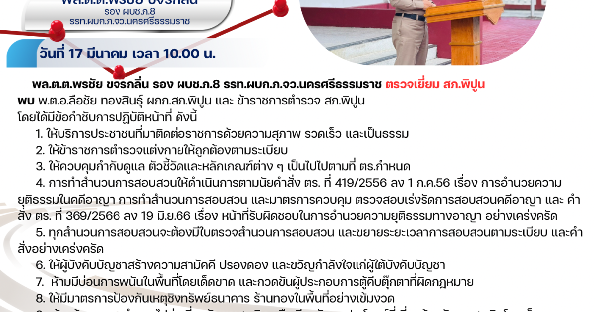 ได้มีข้อกำชับการปฏิบัติหน้าที่ ดังนี้