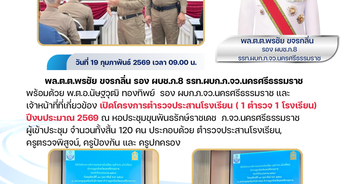 🔰เปิดโครงการตำรวจประสานโรงเรียน ( 1 ตำรวจ 1 โรงเรียน) ปีงบประมาณ 2569
