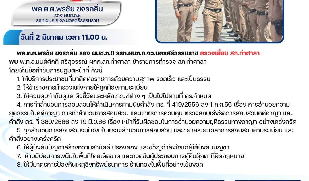 8. ให้มีมาตรการป้องกันเหตุชิงทรัพย์ธนาคาร ร้านทองในพื้นที่อย่างเข้มงวด