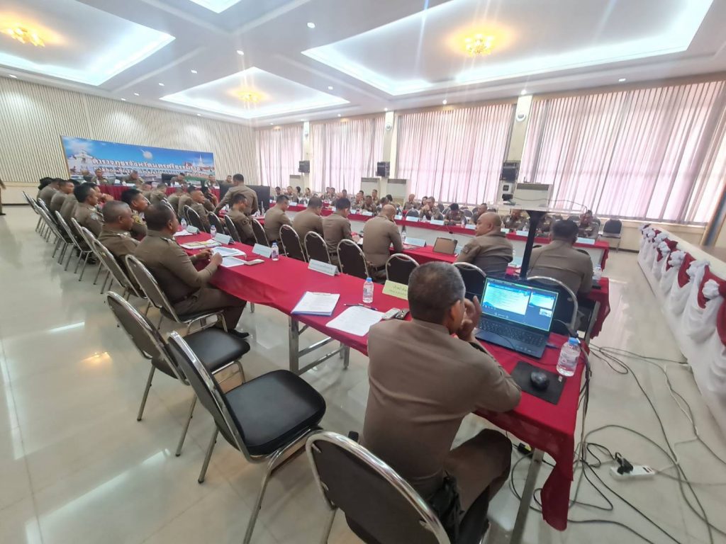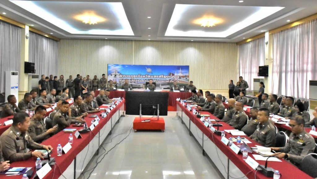 ผู้เข้าร่วมประชุมประกอบด้วย พ.ต.อ.เกรียงศักดิ์ นุ่นเกลี้ยง พ.ต.อ.ขจิตร คงปราบ พ.ต.อ.นัษฐวุฒิ ทองทิพย์ พ.ต.อ.สุทัศน์ สงสยม รอง ผบก.ภ.จว.นครศรีธรรมราช