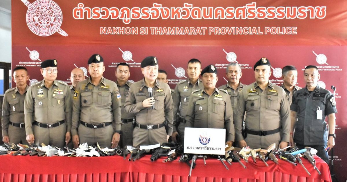 วันที่ 26 ก.พ.68 เวลา 13.30 น. พล.ต.ต.จารุต ศรุตยาพร ผบก.ภ.จว.นครศรีธรรมราช พร้อมด้วย พ.ต.อ.เกรียงศักดิ์ นุ่นเกลี้ยง รอง ผบก.ภ.จว. นครศรีธรรมราช, พ.ต.อ.ขจิตร คงปราบ รอง ผบก.ภ.จว.นครศรีธรรมราช, พ.ต.อ.นัษฐวุฒิ ทองทิพย์ รอง ผบก.ภ.จว.นครศรีธรรมราช, พ.ต.อ.สุทัศน์ สงสยม รอง ผบก.ภ.จว.นครศรีธรรมราช, พ.ต.อ.พิศิษฐ์ วิเศษวงศ์ ผกก.สส.ภ.จว.นครศรีธรรมราช, และ หน.สภ.ในสังกัด ภ.จว.นครศรีธรรมราช ได้ร่วมกันแถลงข่าวผลการ ระดมกวาดล้างอาชญากรรม ประจำเดือน กุมภาพันธ์ 2568 ดั