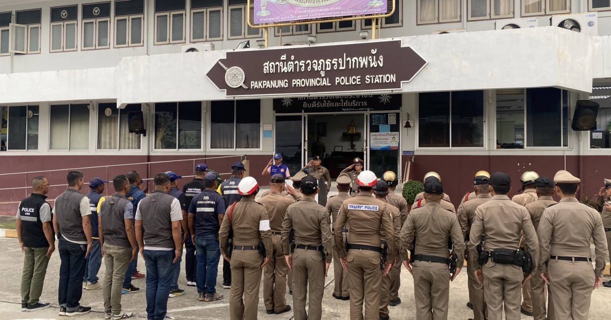 วันที่ 26 พฤษภาคม 2568 เวลา 17.00 น. ภายใต้การอำนวยการของ พล.ต.ต.จารุต ศรุตยาพร ผบก.ภ.จว.นครศรีธรรมราช มอบหมายให้ พ.ต.อ.นัษฐวุฒิ ทองทิพย์ รอง ผบก.ภ.จว.นครศรีธรรมราช ได้เดินทางมาตรวจเยี่ยม สภ.ปากพนัง และ เป็นประธานในการปล่อยแถวระดมกวาดล้างอาชญากรรม ประจำเดือน พ.ค.68 โดยมี พ.ต.ท.สมนึก คงวัดใหม่ รอง ผกก.ป.ฯ , พ.ต.ท.อำพล ชูเมือง สว.สส.ฯ,พ.ต.ท.สมชาย เครือวัลย์ สว.อก.ฯ พร้อมด้วยข้าราชการตำรวจสภ.ปากพนัง, หน่วยข้างเคียงในพื้นที่ประกอบด้วย,ฝ่ายปกครอง, หน่วยกู้ชีพ และอาสาสมัคร เข้าร่วมในพิธีปล่อยแถวโดยพร้อมเพรียงกัน ณ หน้าที่ทำการ สภ.ปากพนัง