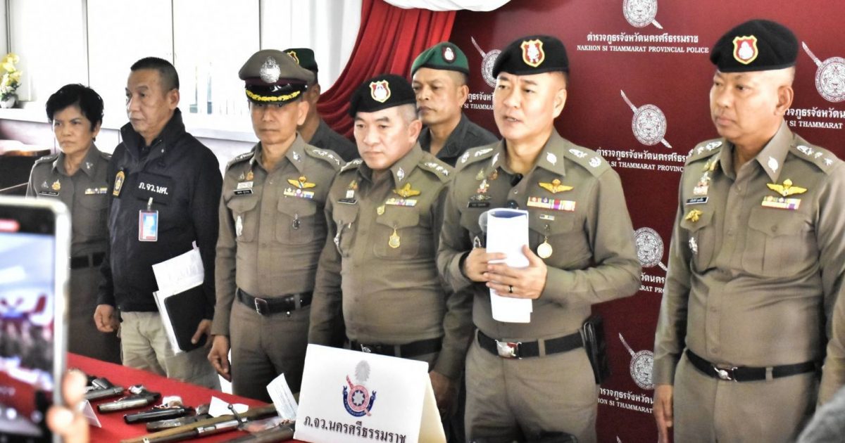 วันที่ 30 ม.ค.68 เวลา 13.30 น. พล.ต.ต.จารุต ศรุตยาพร ผบก.ภ.จว.สตูล รรท.ผบก.ภ.จว.นครศรีธรรมราช พร้อมด้วย รอง ผบก.ภ.จว.นครศรีธรรมราช, ผกก.สืบสวน ภ.จว.นครศรีธรรมราช, ผกก.(สอบสวน) กลุ่มงานสอบสวน ภ.จว.นครศรีธรรมราช, หน. สภ.ในสังกัดและชุดจับกุม ได้ร่วมกันแถลงข่าวผลการระดมกวาดล้างอาชญากรรมห้วงที่ 3 โดยดำเนินการตามแผน “ป้องราษฎร์ ปราบภัย ทันสมัย ห่วงใยประชาชน “ และเพื่อป้องกันเหตุช่วงก่อนการเลือกตั้งสมาชิก อบจ.นครศรีธรรมราช