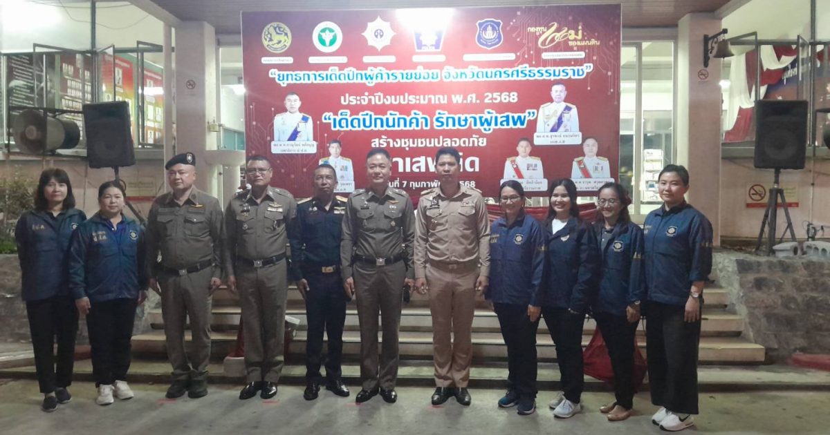 วันที่ 7 ก.พ. 68 เวลา 05.30 น. นายสุวัฒน์ จันทร์สุข รองผู้ว่าราชการจังหวัดนครศรีธรรมราช เป็นประธานในพิธีปล่อยแถวระดมกวาดล้างปิดล้อมตรวจค้นยึดทรัพย์สินเป้าหมายยาเสพติด ตามยุทธการ “เด็ดปีกผู้ค้ารายย่อย” โดยมี พล.ต.ต.จารุต ศรุตยาพร ผบก.ภ.จว.สตูล รรท.ผบก.ภ.จว.นครศรีธรรมราช , นายศิริวัฒนา ชาติภิรมย์ ผู้แทน ผอ.ปปส.ภาค.8
