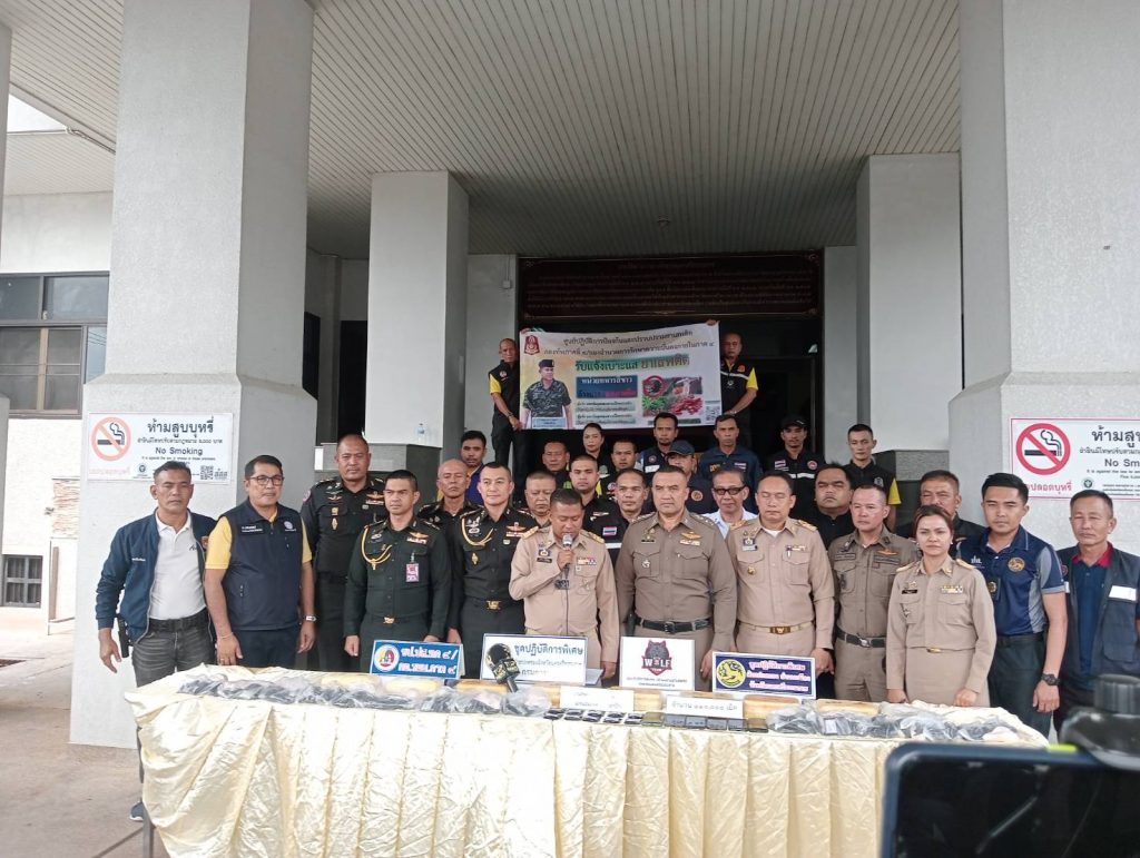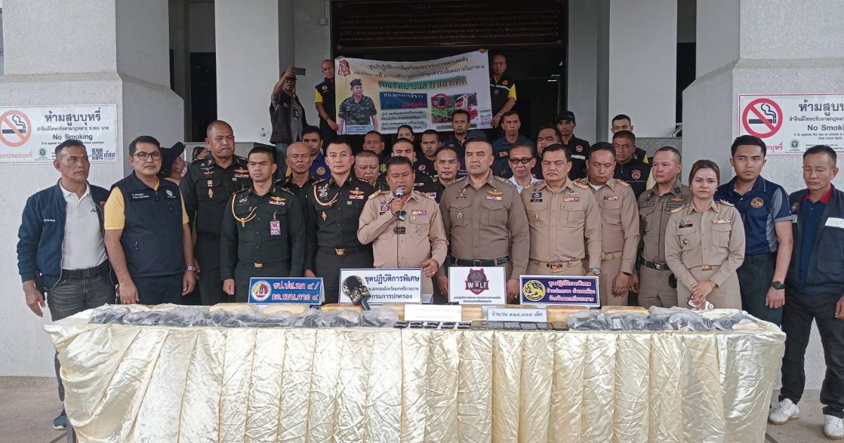 วันที่ 8 ก.ย.68 เวลา 16 .00 น. พล.ต.ต.จารุต ศรุตยาพร ผบก.ภ.จว.นครศรีธรรมราช มอบหมายให้ พ.ต.อ.สุทัศน์ สงสยม รอง ผบก.ภ.จว.นครศรีธรรมราช ร่วมแถลงข่าวการจับกุมยาบ้า จำนวน 110,000 เม็ด เหตุเกิดที่ แยกชลประทานท่าดี ต.โพธิ์เสด็จ อ.เมืองนครศรีธรรมราช นำมาแถลงข่าว ณ ศาลากลางจังหวัดนครศรีธรรมราช โดยมีนายสมชาย ลีหล้าน้อย ผู้ว่าราชการจังหวัดนครศรีธรรมราช เป็นประธานในการแถลงข่าว September 9, 2568 by admin / ข่าวภารกิจผู้บังคับบัญชา Facebook iconFacebookTwitter iconTwitterLINE iconLine
