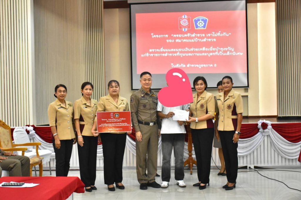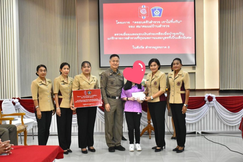 – เงินช่วยเหลือจากชมรมแม่บ้านตำรวจภูธรภาค 8 รายละ 5,000 บาท