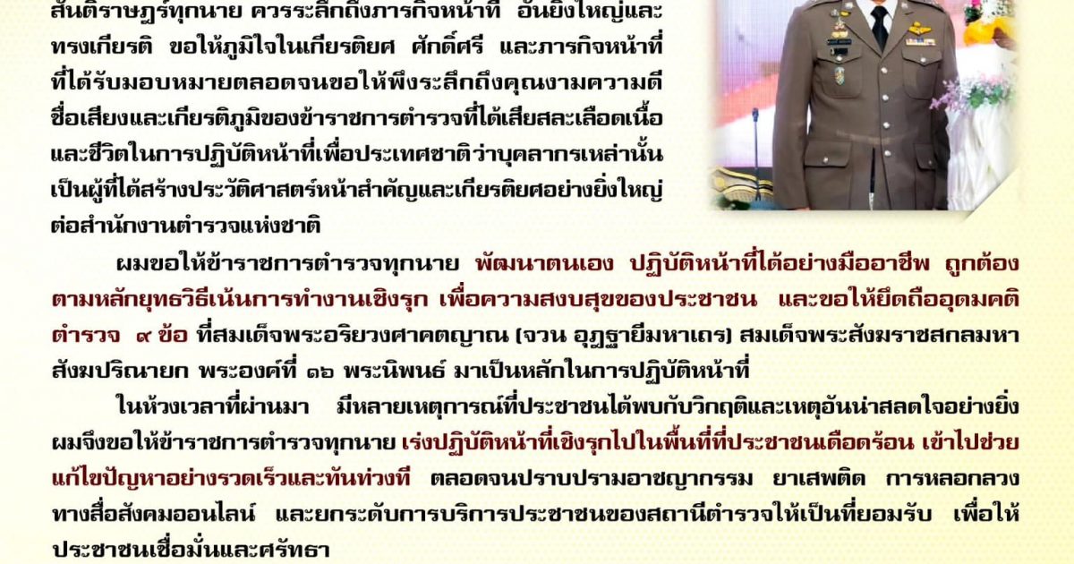 สารจาก พลตำรวจเอก ดำรงศักดิ์ กิตติประภัสร์ ผู้บัญชาการตำรวจแห่งชาติ เนื่องในวันตำรวจ ประจำปี 2565 October 17, 2565 by admin / ข่าวประชาสัมพันธ์ Facebook iconFacebookTwitter iconTwitterLINE iconLine