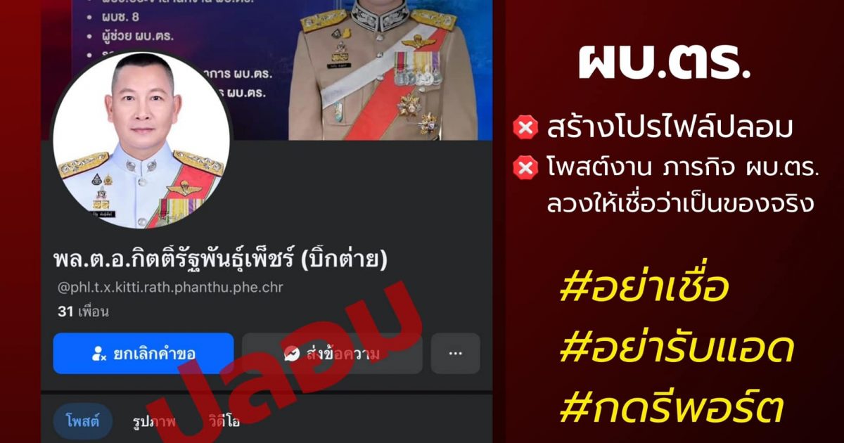 เตือนภัยออนไลน์อย่าเชื่อเฟสบุ๊กปลอม March 28, 2568 by admin / ข่าวประชาสัมพันธ์ https://www.facebook.com/share/p/15bjZRVDfh Facebook iconFacebookTwitter iconTwitterLINE iconLine