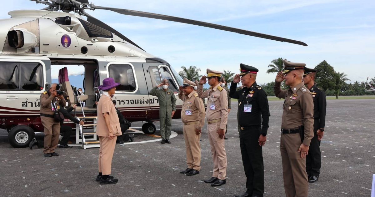 23 พ.ค. 68 เวลาประมาณ 08.10 น. สมเด็จพระกนิษฐาธิราชเจ้า กรมสมเด็จพระเทพรัตนราชสุดา เจ้าฟ้ามหาจักรีสิรินธร มหาวชิราลงกรณวรราชภักดี สิริกิจการิณีพีรยพัฒน รัฐสีมาคุณากรปิยชาติ สยามบรมราชกุมารี เสด็จฯ โดยรถยนต์พระที่นั่งไปยังสนามเฮลิคอปเตอร์ชั่วคราวค่ายวชิราวุธ ทรงประทับเฮลิคอปเตอร์พระที่นั่ง เสด็จฯ ไปยังโรงเรียนตำรวจตระเวนชายแดนท่านผู้หญิงอังกาบ บุณยัษฐิติ (บ้านคลองวาย) อำเภอวิภาวดี จังหวัดสุราษฎร์ธานี พล.ต.ต.จารุต ศรุตยาพร ผบก.ภ.จว.นครศรีธรรมราช คุณ จิราพร สงสยม รองประธานแม่บ้านตำรวจภูธรจังหวัดนครศรีธรรมราชพร้อมด้วยคณะแม่บ้านตำรวจภูธรจังหวัดนครศรีธรรมราช และข้าราชการตำรวจในสังกัด ภ.จว.นครศรีธรรมราช เฝ้าฯ ส่งเสด็จ น้อมเกล้าฯ ถวายกระเช้าของที่ระลึก ณ สนามเฮลิคอปเตอร์ชั่วคราวค่ายวชิราวุธ กองทัพภาคที่ 4 จังหวัดนครศรีธรรมราช