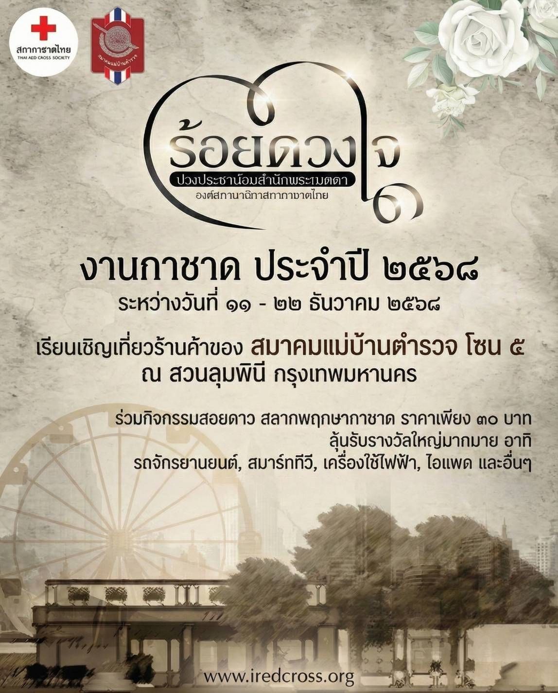 สมาคมแม่บ้านตำรวจเชิญชวนร่วมงานกาชาด ประจำปี 2568 เริ่มแล้ววันนี้ ถึงวันที่ 21 ธันวาคมนี้ ณ สวนลุมพินี… December 16, 2568 by admin